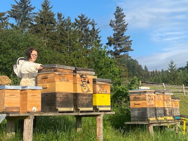 Der zweite Standort befindet sich in Pierbach, am Elternhaus von Martina. Durch die sanfte Bewirtschaftung der Landschaft mit Schafhaltung und die Nähe zu einem großen Waldgebiet können die Bienen ein vielfältiges Angebot nützen.